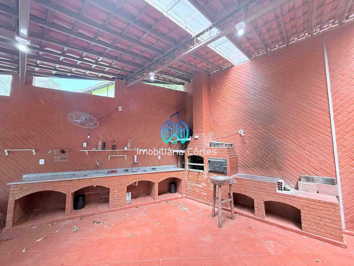 •Espaço gourmet com churrasqueira, forno de pizza e fogão à lenha